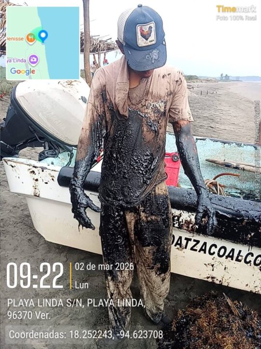 Hoy, en el sur de Veracruz, el chapopote tiene presencia física, olor penetrante y víctimas visibles.