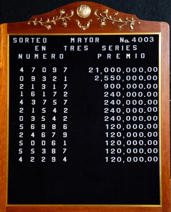 - Premio Mayor: 21 millones de pesos, billete No. 47097.