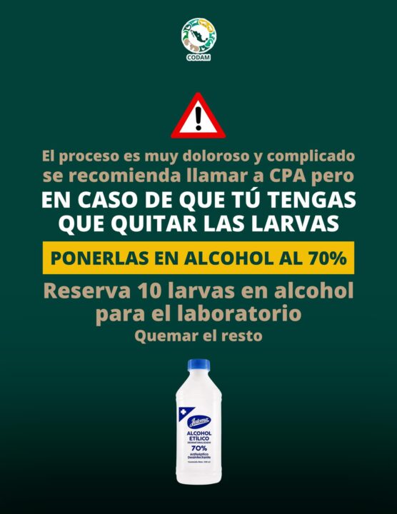 - Acudir de inmediato al veterinario ante signos de infección o presencia de larvas