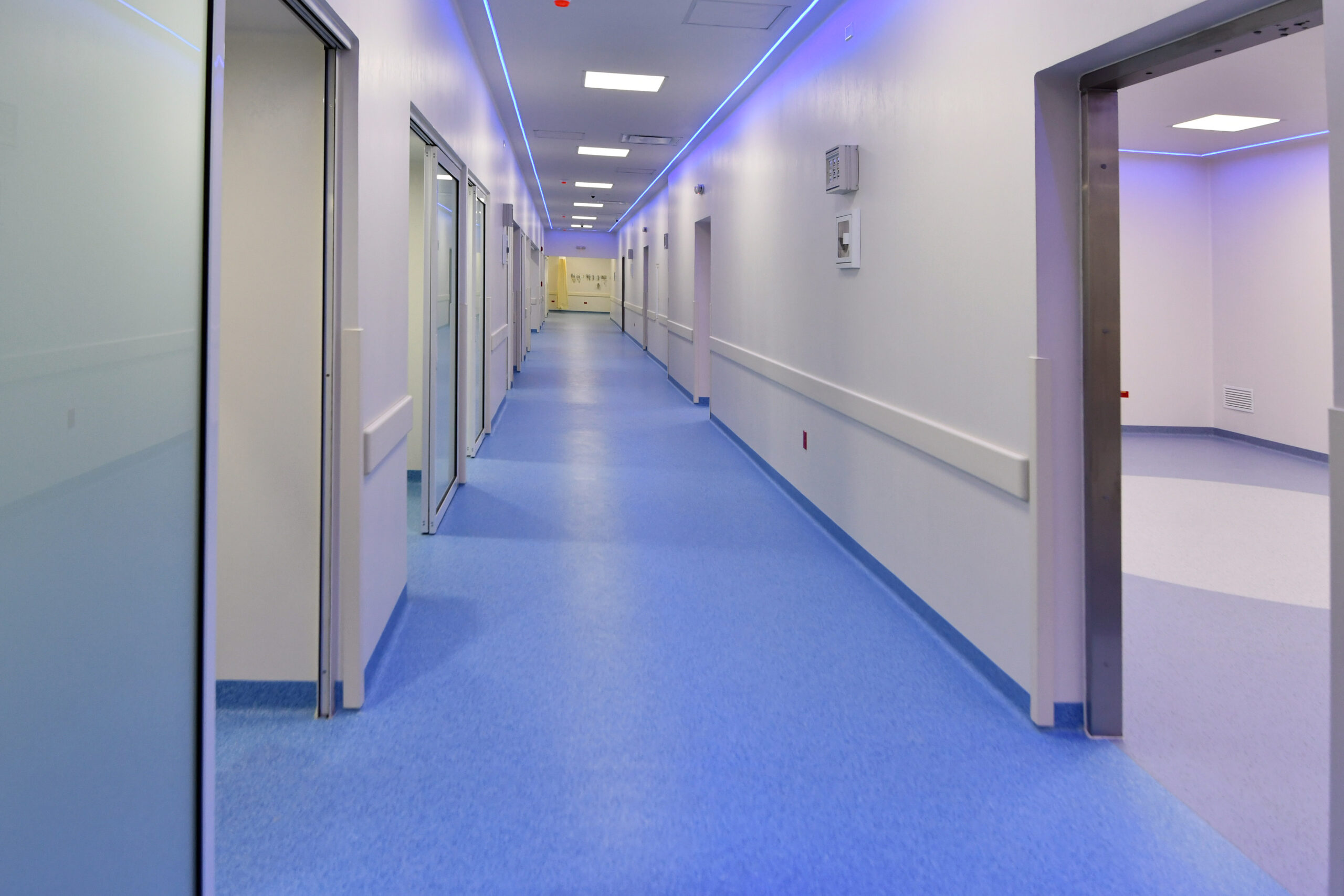 El piso de toda la zona es PVC grado hospitalario, material que garantiza mayor higiene y control sanitario.