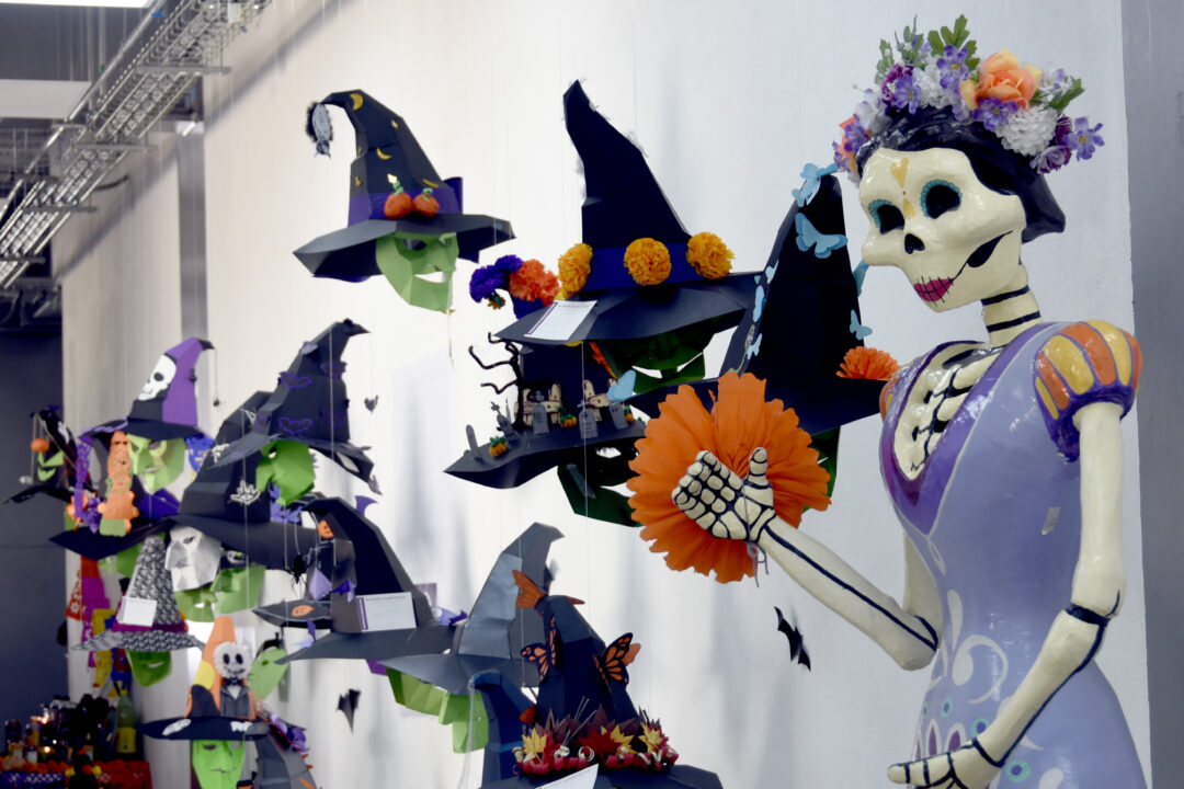 Como parte de las actividades, se realizaron concursos de ofrendas, carteles, disfraces y dibujo, donde los estudiantes mostraron su talento y creatividad. Además, alumnos de la licenciatura en Diseño Gráfico presentaron un montaje artístico titulado “Hechizos geométricos”, inspirado en las formas, colores y símbolos asociados a la muerte.