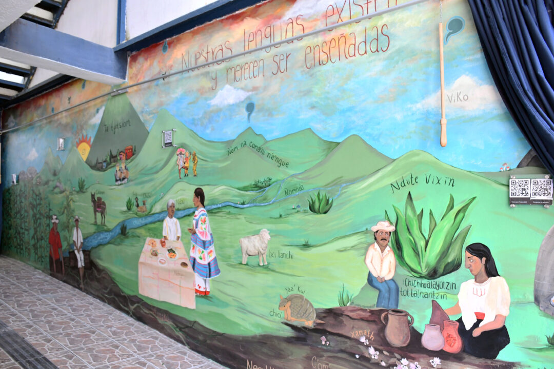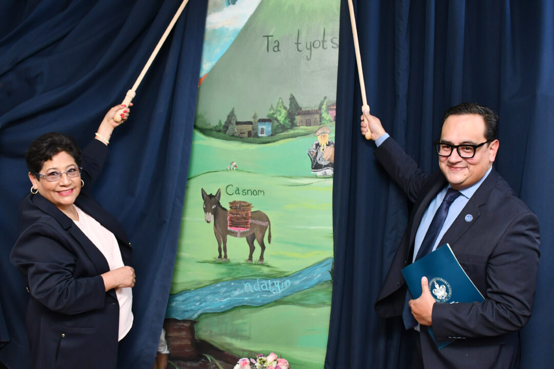 El acto también incluyó la inauguración del mural “Paisaje lingüístico interactivo de lenguas originarias”, realizado por estudiantes de la Facultad de Artes Plásticas y Audiovisuales, una obra que visibiliza las voces nativas desde escenas cotidianas de trabajo, convivencia y comunidad.