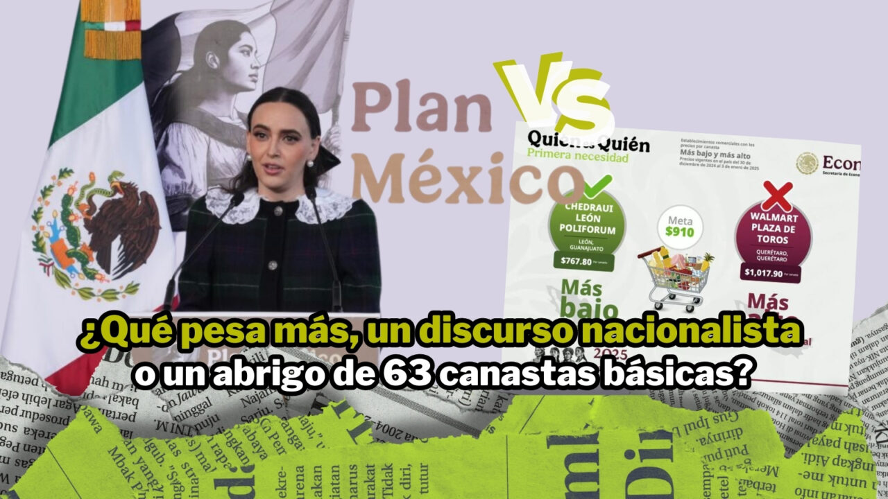 El pasado lunes, el director de la PROFECO, Iván Escalante, presentó el monitoreo del programa “¿Quién es Quién en los Precios?”, destacando que el costo de la canasta básica de 24 productos esenciales debe mantenerse por debajo de los 910 pesos. Ese mismo día, Altagracia Gómez Sierra, coordinadora del Consejo Asesor de Desarrollo Económico, encabezó la presentación del Plan México en Palacio Nacional, invitando a los ciudadanos a consumir productos nacionales y a los empresarios a invertir en el país para fortalecer la economía local.