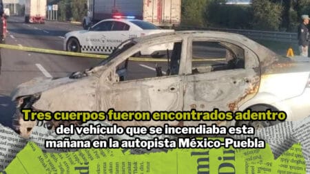 Tres cuerpos fueron encontrados adentro del vehículo que se incendiaba esta mañana en la autopista México-Puebla 14 de octubre de 2024